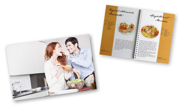 Dabei ist es gar nicht so schwer ein Kochbuch zu erstellen! Lassen Sie Ihr Kochbuch individuell nach unseren Vorgaben bedrucken. Gestalten Sie Ihr eigenes Cover und wählen Sie zwischen vielen verschiedenen Bindungs-Varianten. Auch äußerlich sind Ihrer Fantasie keine Grenzen gesetzt. Ganz nach Ihrem Belieben!